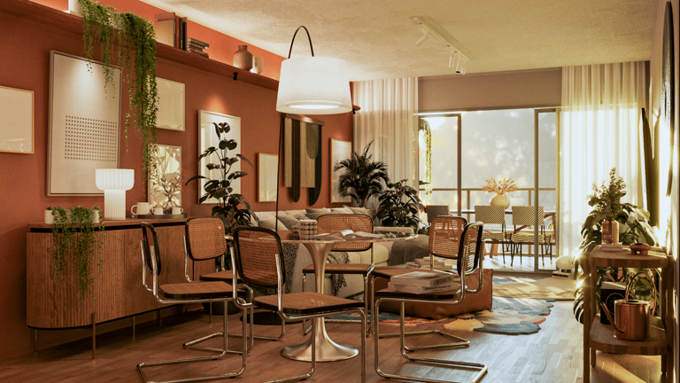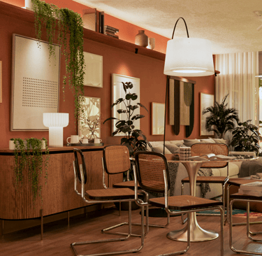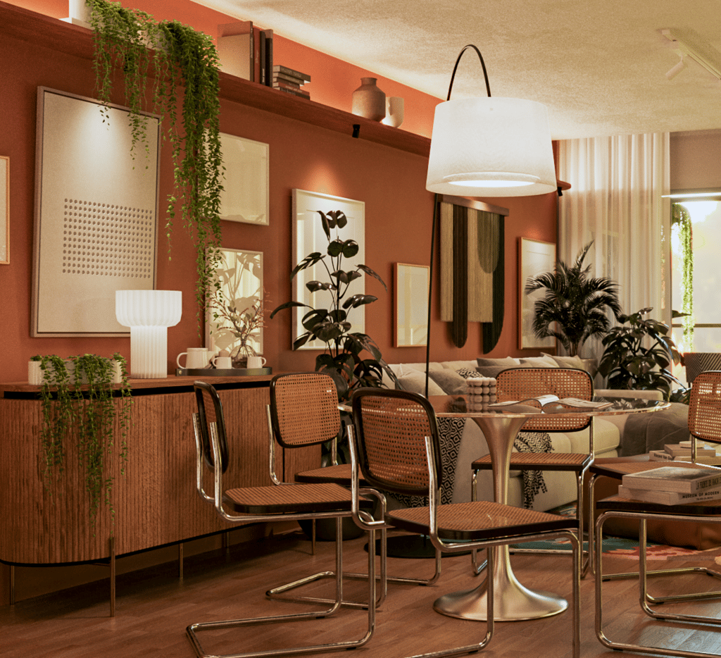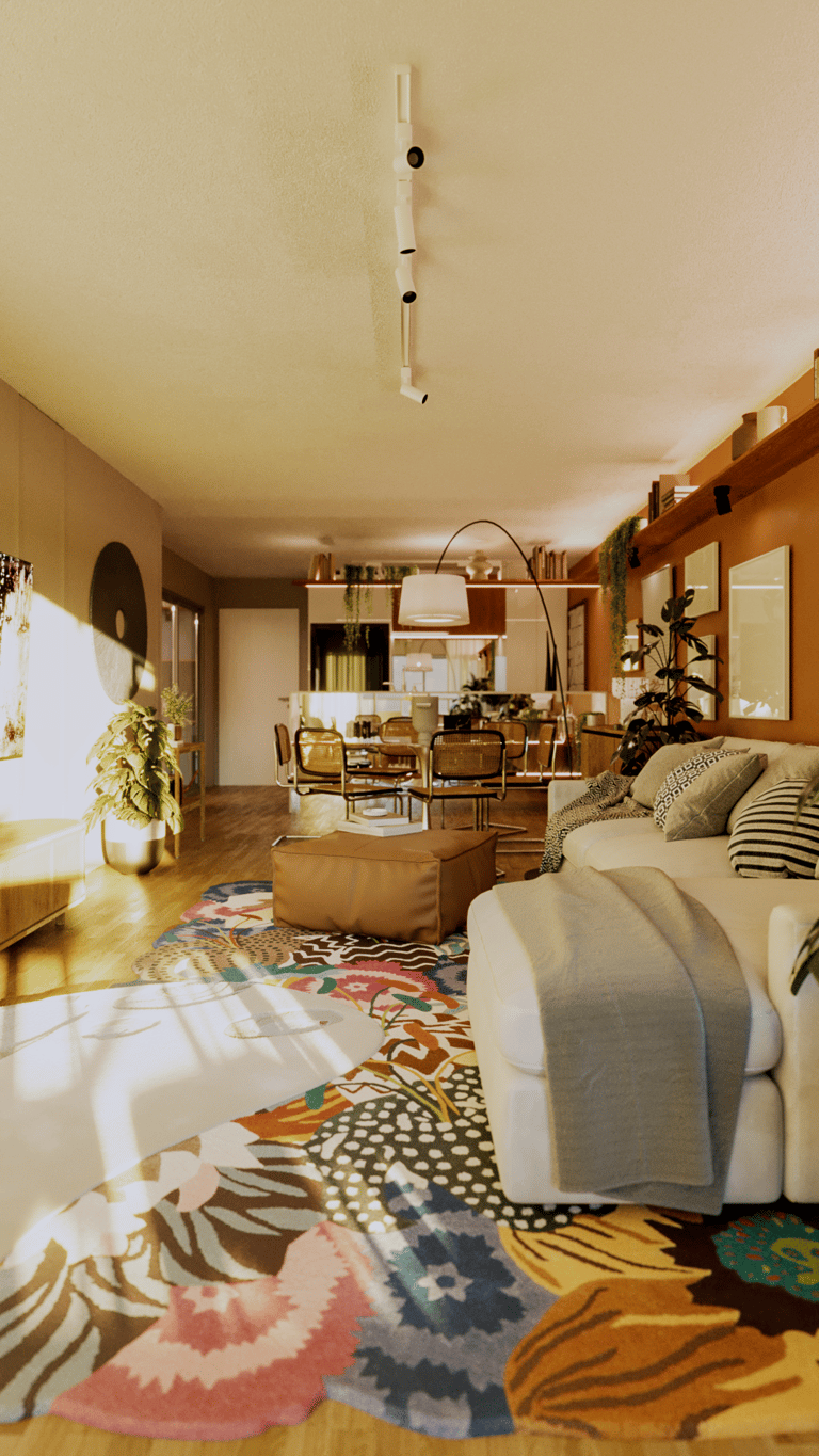 A proposta foi criar ambientes acolhedores e expressivos com intervenções pontuais, mas com forte presença. Apostamos em móveis prontos, escolhidos com precisão para compor uma atmosfera única, com cores quentes, texturas naturais e muitas plantas que trazem vida e suavidade. A iluminação também teve papel essencial — explorando diferentes cenas para transformar o espaço ao longo do dia e da rotina. Um apartamento funcional, afetuoso e cheio de identidade.