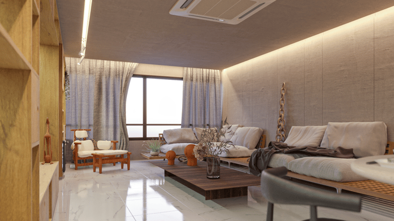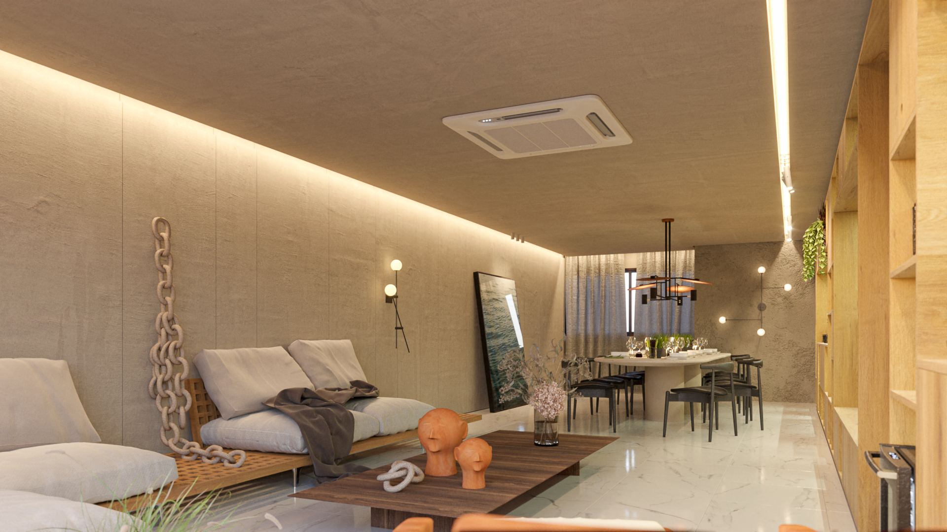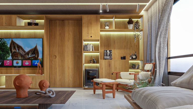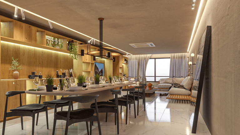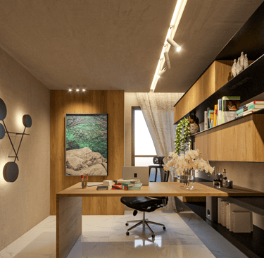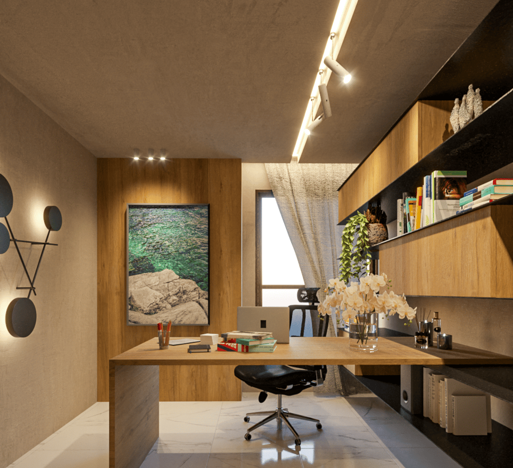 O projeto MODE nasceu do desejo de transformar um apartamento alugado, antes branco e impessoal, em um lar com identidade e afeto. O casal, apaixonado por natureza, conforto e por receber bem, queria que os ambientes mais vividos refletissem sua forma de habitar. Na sala, criamos um móvel extenso e integrado que organiza desde o cantinho do café até o apoio para a mesa de jantar, passando pela TV e armazenamento. Tudo pensado para ampliar o espaço sem segmentar. No escritório, uma estante em aço carbono acomoda a coleção de livros, com nichos fechados que escondem a parte técnica. Um painel de madeira com quadro frontal disfarça um armário embutido, revelando a atenção a cada detalhe e o cuidado em tornar a casa mais viva. Mesmo sem grandes intervenções estruturais, o projeto ressignifica a experiência de morar. A paleta natural, os materiais táteis e a marcenaria sob medida criam uma atmosfera acolhedora e funcional, o resultado é um espaço que acolhe o cotidiano e convida a permanecer.